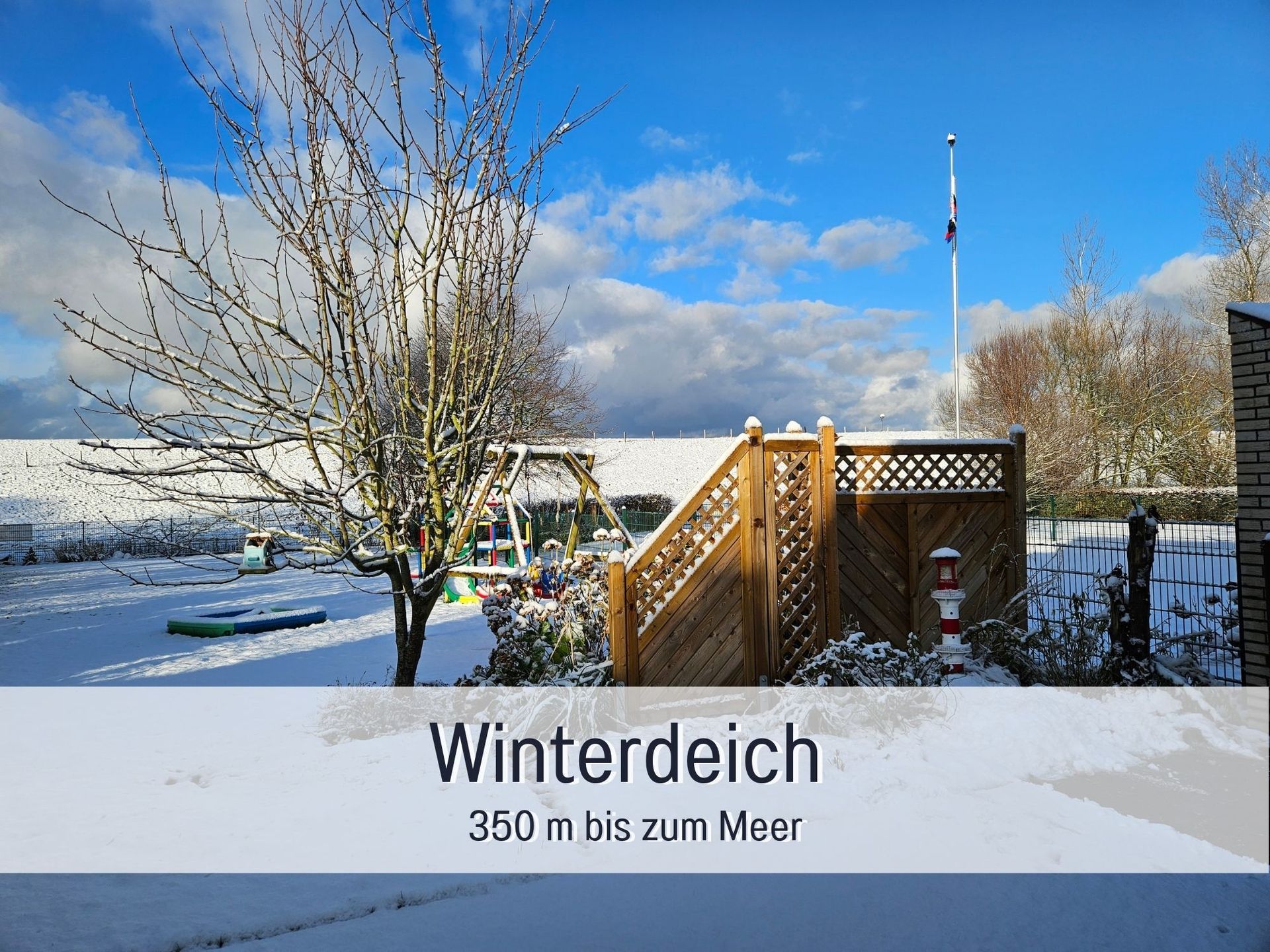 Unsere Ferienwohnung Kiek rut in Harlesiel liegt direkt am Deich und bietet