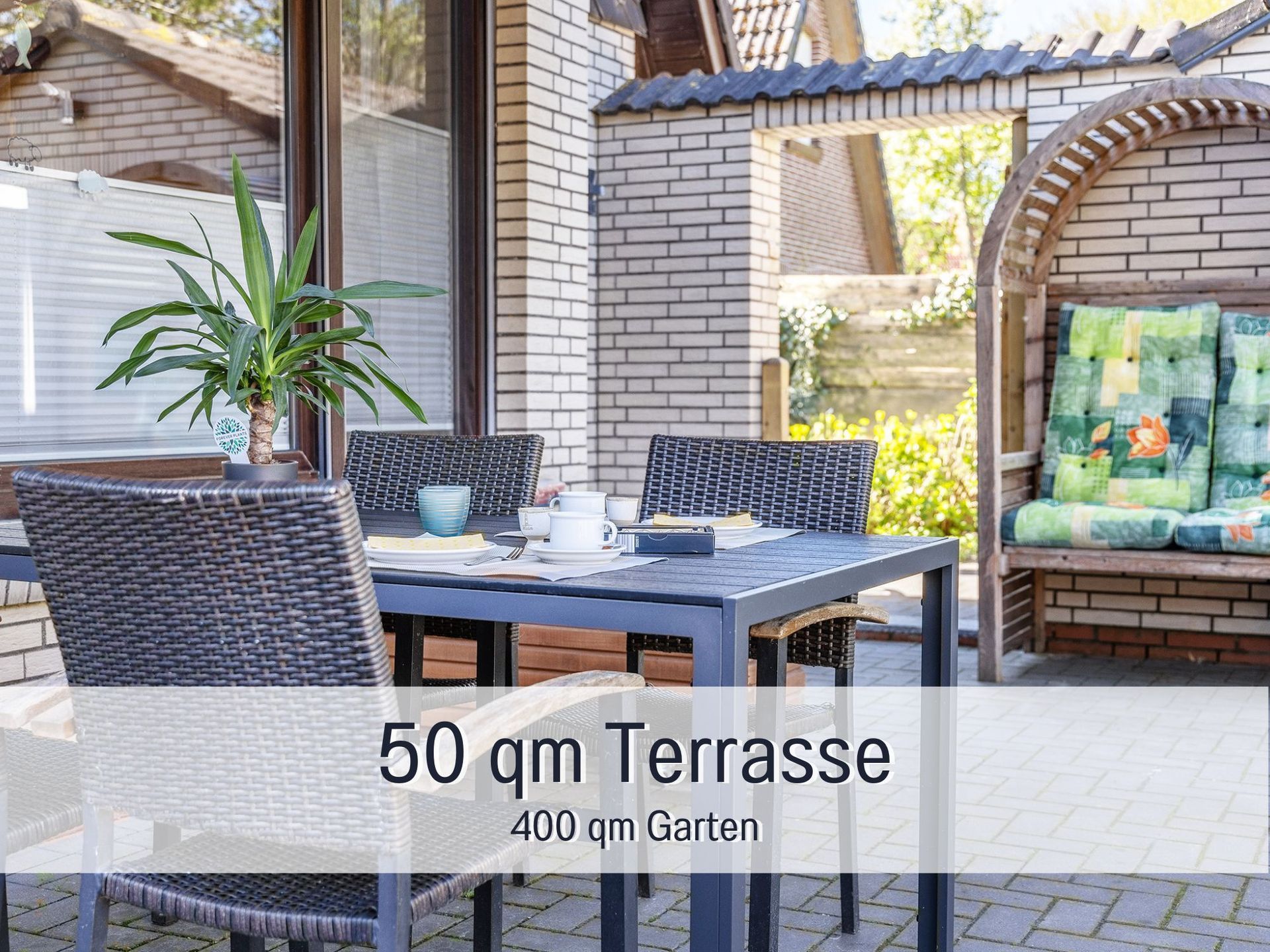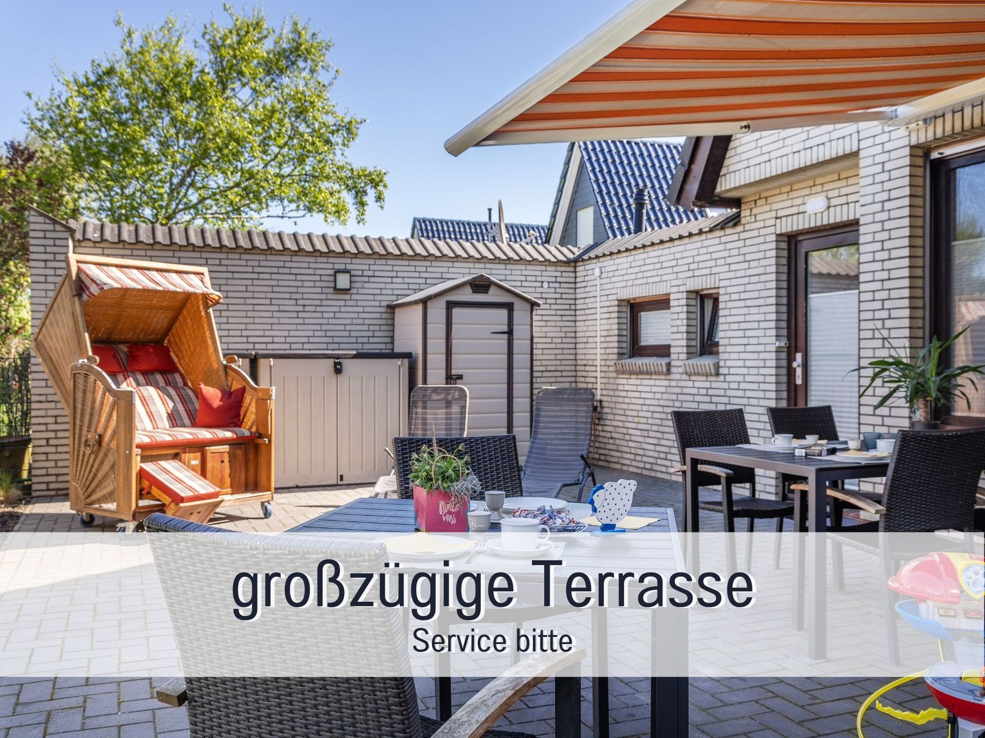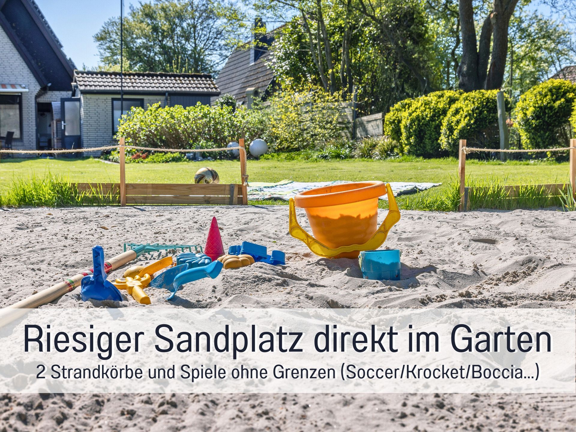 Ob Frühstück auf der Terrasse, Zeit im Strandkorb oder einfach barfuß im Gras - die Nordsee beginnt hier direkt vor der Tür, nicht zuletzt durch den großen Strandkasten im Garten.