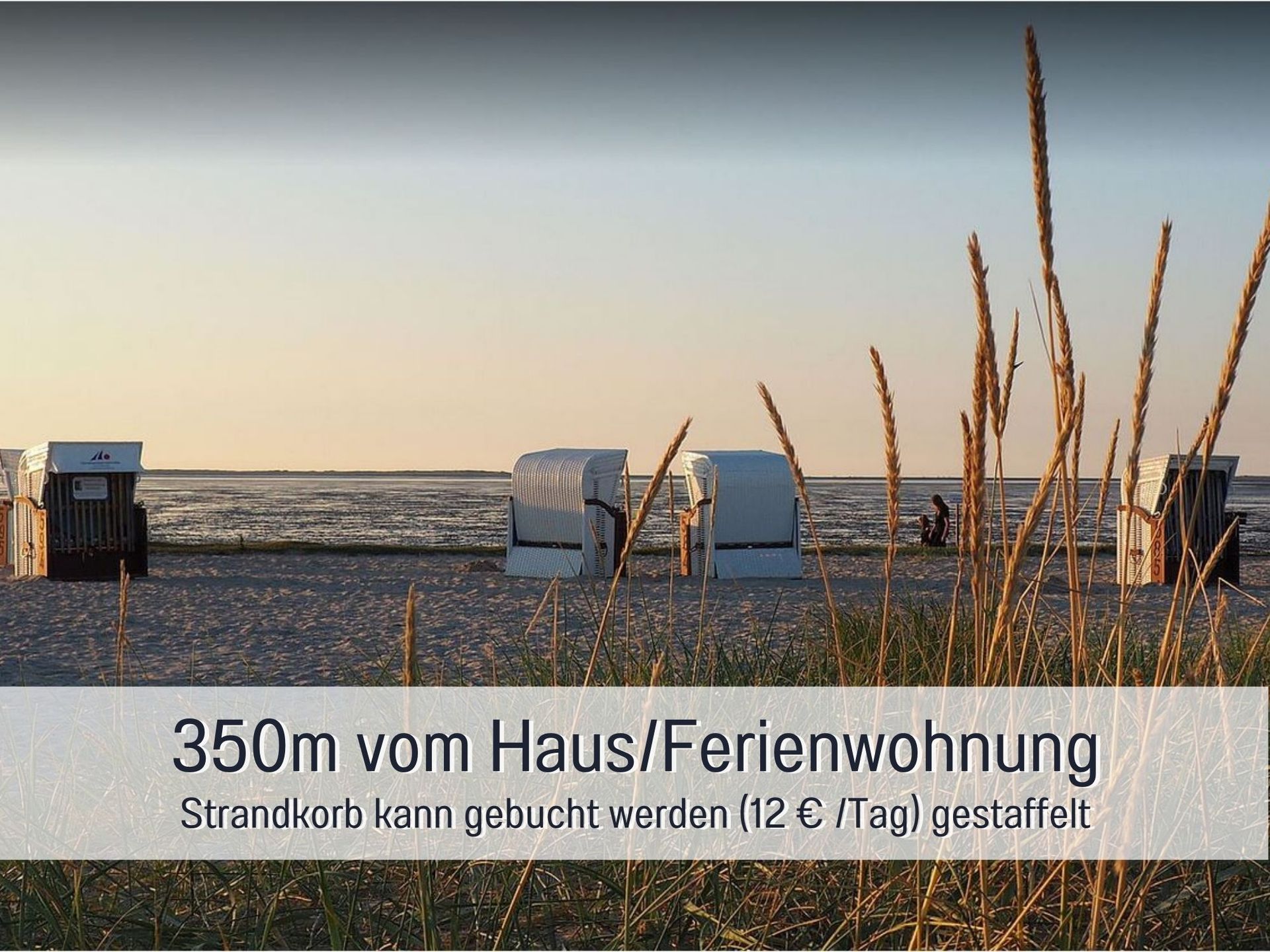 Die Ferienwohnung liegt in Harlesiel direkt hinter dem Deich und nur 350 m vom Strand entfernt.